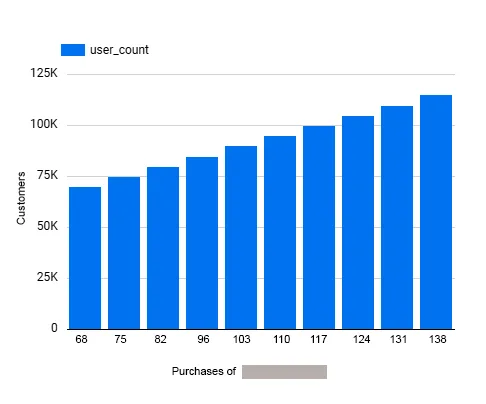 This graph shows a linear relationship between number of customers and number of purchases (exact data hidden for privacy of our client). Through data modeling like this we can then answer questions like: “If we pay/work to get X more visitors to take the free quiz, how many more sales of product X should we expect?” This then helps us answer key questions like: “Is this investment worth it? Will we make an ROI?”