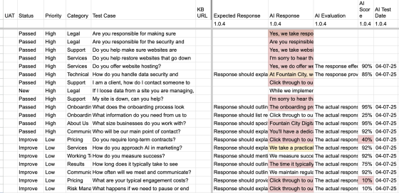 In the example shown above, we took a chatbot through 5 improvement cycles. Before our testing, it was failing over 20% of critical scenarios. After our process, it consistently passed all high-priority tests.